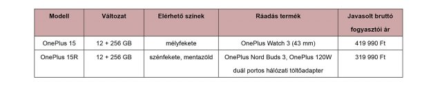 The OnePlus 15 and OnePlus 15R are now officially available in Hungary starting March 2026, arriving with limited-time bundle offers through major local retailers. Customers purchasing the flagship OnePlus 15 receive a OnePlus Watch 3 (43 mm), while buyers of the OnePlus 15R get OnePlus Nord Buds 3 wireless earbuds and a 120W dual-port SUPERVOOC charger, while supplies last. The OnePlus 15 combines a high-brightness 120 Hz AMOLED display, the powerful Snapdragon 8 Elite Gen 5 chipset, a versatile 50 MP triple camera system, and a large battery with ultra-fast charging. The OnePlus 15R focuses on exceptional battery life with its 7400 mAh capacity, flagship-level performance, and a smooth AMOLED display with up to 165 Hz refresh rate. Both models bring the brand’s signature blend of premium performance, modern design, and advanced technology to the Hungarian market.
