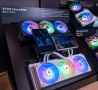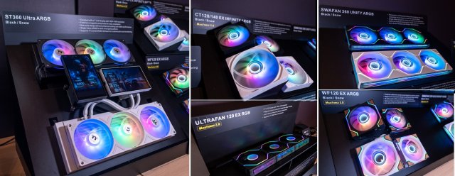 A hűtő mellett a Thermaltake bemutatja az újratervezett Dual Infinity Mirror Lighting rendszert az új ventilátorcsaládban, fekete és Snow színekben. A belső fehér gyűrű stabil, fényes magot ad, míg az ARGB-s külső gyűrű alagútszerű mélységeffektet hoz létre, így a ventilátorok réteges, dimenziós fényhatást biztosítanak. Ez adja a Thermaltake következő generációs világítási identitását.