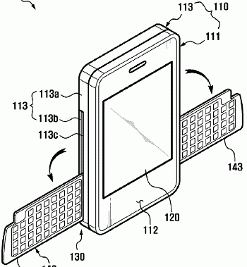 Úgy néz ki a Samsung mérnökeire komoly benyomást tett a Transformers. Olyan koncepició dolgoznak, amikor a QWERTY billentyűzet nem fiókosan jön ki a telefonból, hanem a két oldalából hajtható ki. Érdekes elgondolás, de kíváncsi lennék, hogyan lehet ezzel egy kézzel sms-t írni. Az is kérdés, hogy kihajtás után mennyire stabil, strapabíró, vagy esetleg levehető lesz mint a Sony Ericsson P990i esetében?