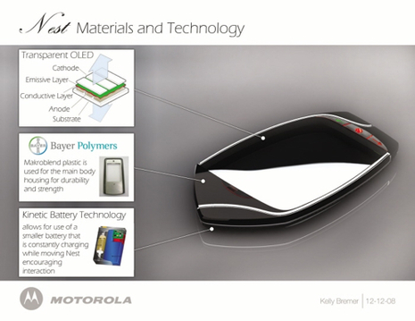 Izgalmas Motorola készüléket láthatnak az internetet böngészők, hiszen beindult a Motorola fantáziája is. Az ő álmaikban egy igazán formabontó külalakkal megáldott készülék "kísért", a Motorola Nest. Az érintés érzékeny kijelzővel szerelt készülék formája nem hasonlítható a piacon lévő készülékekéhez, valamint kijelzőhöz hasonlító hátlapja is különlegesnek mondható, hiszen reflektív műanyag hátlapot kapott a kicsike.