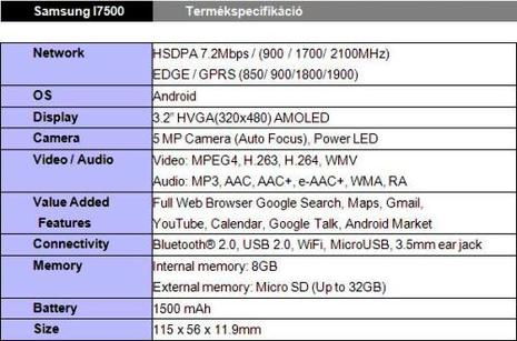 A Samsung I7500 okostelefon 3.2” AMOLED teljes érintőképernyővel, valamint 7.2Mbps HSDPA és WiFi kapcsolattal rendelkezik, így felhasználói hihetetlen sebességgel internetezhetnek, illetve használhatják a Google™ mobil szolgáltatásait.