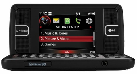 Ez a szétcsúsztatható telefon az első olyan készülék, amely diszkréten beépített, Bluetooth®-alapú fejhallgatóval rendelkezik. Az öt irányba mozgatható vezérlőgomb az egyszerű navigációt szolgálja a "Verizon" hálózat átfogó vezeték nélküli multimédiás szolgáltatásai között.