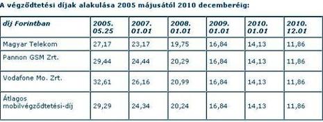A határozat szerint a mobilhálózatokba érkező hívások végződtetéséért fizetendő nagykereskedelmi díj a jelenlegihez képest mintegy 40 százalékkal fog csökkenni 2010. decemberéig, miután a három magyarországi mobilszolgáltató végződtetési díjai az utóbbi három évben már mintegy 30 százalékkal mérséklődtek