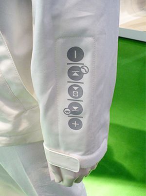 A kezelőszerveket a kabát bal karján találjuk (balkezesek ismét hátrányban), hogy könnyedén elérhessük őket. Ugye mennyivel kényelmesebb, mint a zsebekben túrkálni, ha fel akarjuk venni a telefont vagy a zenét lehalkítani?