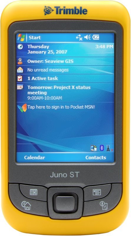 A Trimble Juno ST egy külsőre elsősorban a Trimble-sárga színével tér el a hagyományos PDA-któl. Belül egy 300 MHz-es Samsung processzor dolgozik, 64MB RAM és 128MB Flash memóriával, SD kártya bővíthetőséggel. Vezeték nélküli kapcsolatai jók, bluetooth és WiFi 802.11b/g is található benne. Képernyője nem túl nagy, 2,8" 240x320 felbontású TFT. Operációs rendszere Windows Mobile 5.