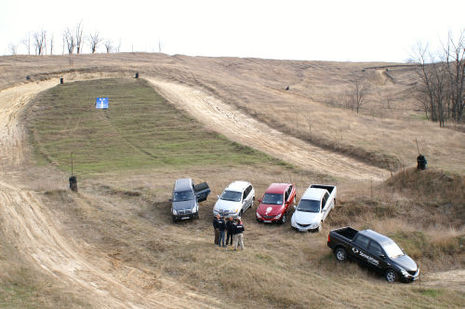 Különböző fokozatú pályákon (kék, piros, fekete) próbálhattuk ki a SsangYong terepjáróit, volt sártenger és siratófal, hegymenet és lejtmenet, hinta és palinta. Érdekes volt automata váltóval menni a terepen (tökéletesen működött) de az igazi mégiscsak a kézivezérlés.