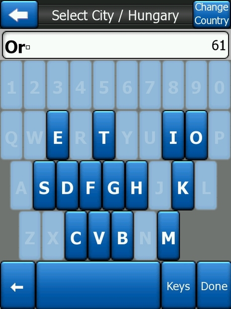 - Okos billentyűzet: Címkereséskor mindig csak a következő lehetséges karaktereket lehet megnyomni a billentyűzeten, a többi karakter inaktív, szürke.
