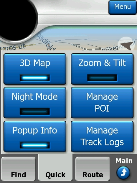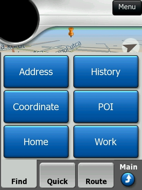 Új viszont a program menü-rendszerének megjelenítése, egy kellemes kék felületben pompázik az iGO My Way 2006 Plus, merthogy a program neve is változott.