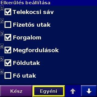 Elkerülhetjük vagy engedélyezhetjük fizetős utakat, földutakat, megfordulásokat, de kijelölhetünk elkerülendő téglalap alakú területeket vagy egyes utakat, útszakaszokat. Ezeket természetesen meg is jegyzi a program.