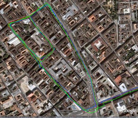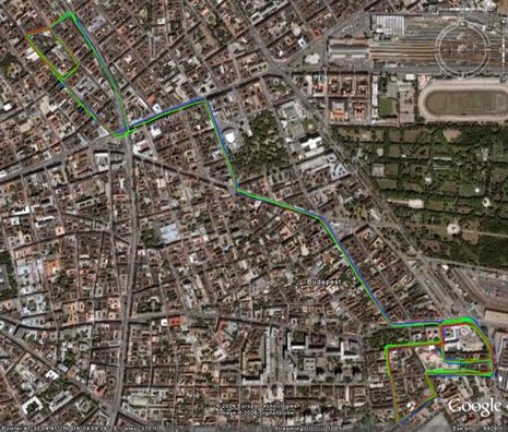 A 7. és 8. kerület szűkebb részein rögzített útvonalak alapján nincs jelentős eltérés a GPS vevők viselkedése között, ahogy azt az azonos chipset alapján vártuk is.