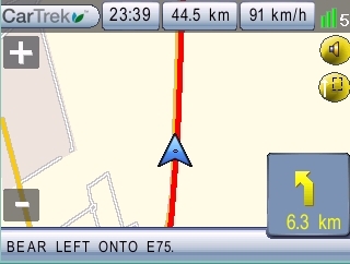 Bekapcsolás után egyből (na jó, egy kis idő múlva) a navigációs program felülete fogad, és ha véletlenül rá találunk kattintani a kilépés gombra, akkor a büntetés egy újraindulás, kis készülékünk nem hagyja magát becsapni, csak azért is navigáljunk!