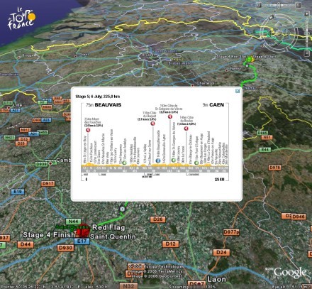 futamainak részeredményei, és még sok más hasznos adat böngészheto a Google Earth telepítése után, ha megnyitjuk a Tour weboldaláról az ott szereplo fájlt, amely a fentieket a képernyonkre varázsolja. Ez a .kml fájl folyamatosan