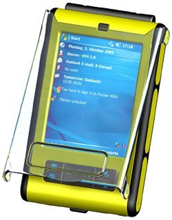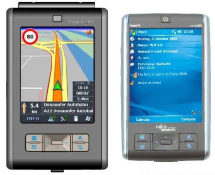 Az Andres-Industries költségkímélo megoldást választott, amikor a nagy szériában gyártott, integrált SiRF III-as GPS vevot tartalmazó Fujitsu-Siemens PDA-t, a Pocket Loox 520-at saját, gyárilag rögzített gumírozott borításával mutatta be. A terepi változat különféle színekben érheto el, alig nagyobb az alapmodellnél (lásd a fenti képet) és csak 200 grammot nyom, így használata nem okoz igazán kényelmetlenséget. Az eltávolítható gumikupakok révén a szinkronkábel, a fejhallgató csatlakozó és az SD kár