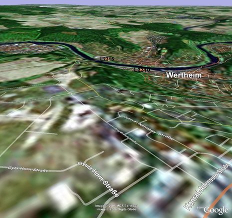 Az érdeklodok kedvéért megadjuk az utca egyik töréspontjának GPS koordinátáit is (49° 45' 20,5044" ; 9° 29' 39,3939"), Google Earth böngészovel rendelkezo olvasóink pedig ide kattintva juthatnak el a helyszínre.