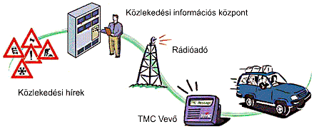 A TMC (Traffic Message Channel) egy olyan - egységes európai szabvány szerint muködo - rendszer, amely bármely rádióadó RDS (Radio Data System) adatátvivo rendszerén keresztül állandóan, de nem hallhatóan kódolt közeledési információkat sugároz. Azaz vezetés közben nyugodtan hallgathatjuk a rádiót, miközben - számunkra észrevehetetlen módon - a navigációs rendszerünk folyamatosan "hallgatja" a közlekedési híreket, azokat kiértékeli és - szükséges esetén - azonnal reagál rájuk. Ha például azon az útvonalon, amin haladunk, idoközben egy dugó alakult ki, akkor errol a navigációs rendszer automatikusan figyelmeztet bennünket, és egy ésszeru elkerülo utat javasol. A vezeto ilyenkor eldöntheti, hogy a módosított vagy az eredeti útvonalon menjen tovább.