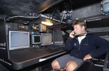 Steve Hayles az Ericsson Racing Team navigációs berendezéseivel