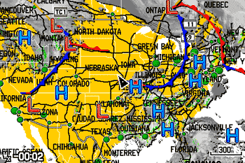XM muholdas rádión vett idojárási adatok a GPSMAP 396C chartplotter képernyojén