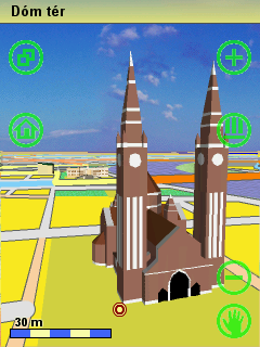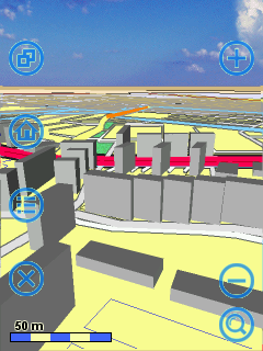 A korábbi hírekben szereplo, domborzatmodellel kombinált látvány ebben a béta kiadásban nem szerepel, a nevezetes épületek 3D modelljei, a lakótelepek tömbjei és a felhos égbolt azonban így is realisztikus környezetet teremtenek navigáció közben. A feliratozás és a zoom-szintek az új, tetszoleges szögre állítható nézetnek megfeleloen szintén módosultak. A jobb oldali kép a magassági adattal is bíró tracklogok 3D-s megjelenítésére mutat példát egy siklóernyos útvonalának ábrázolásával (forrás).