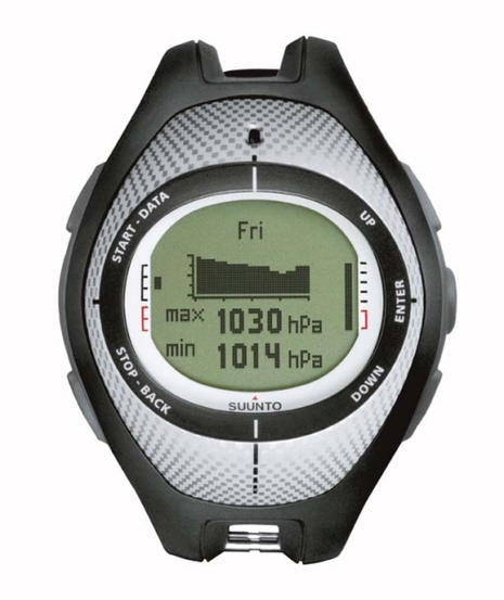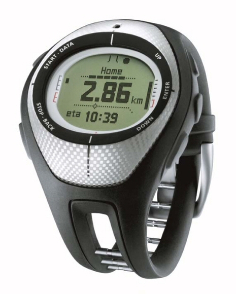 | A sportos, de meglehetosen robusztus külseju óra viseléséhez hamar hozzá lehet szokni. A muholdvételnek is kedvez, ha télen a mellékelt óraszíj toldalékkal a sportkabátra szíjazzuk. A 100 méterig vízálló óra nagyméretu kijelzojén boven jut hely a hét karakterbol álló koordinátáknak, vagy a barométer adatokból készített grafikonnak. |