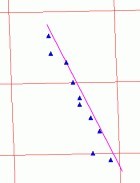 A helymeghatározás teljesítményét más vevokkel párhuzamosan végzett pontméréssel és track rögzítéssel teszteltük. Az elso esetben a Duna partján egy egyenes mentén egymástól azonos távolságra (20 méterre) lévo 10 db ponton mértünk. Alább a bal oldali és a középso ábra a Suunto X9-cel rögzített útpontokat mutatja, míg a jobb oldali grafikonon egy Emtac BlueTooth GPS-szel – a középso grafikonon szereplo mérésekkel egyidoben – rögzített értékek szerepelnek. A lila vonal a referencia egyenes helyzetét jelöli, a piros rácsháló osztása 100 méteres. Látható, hogy az Emtac által rögzített pontok jobban közelítik a valóságot, azaz a szabályos eloszlást az egyenes mentén.