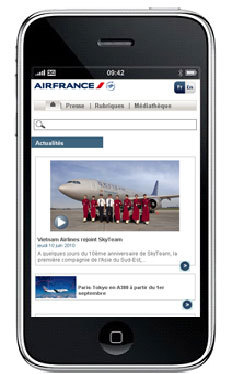 Kifejezetten mobiltelefonokra kialakított internetes oldalt kínál az Air France